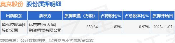 证券之星消息,奥克股份(300082)11月10日公开信息显示,股东奥克控股集团股份公司向远东宏信(天津)融资租赁有限公司合计质押659.34万股,占总股本0.97%。质押详情见下表: